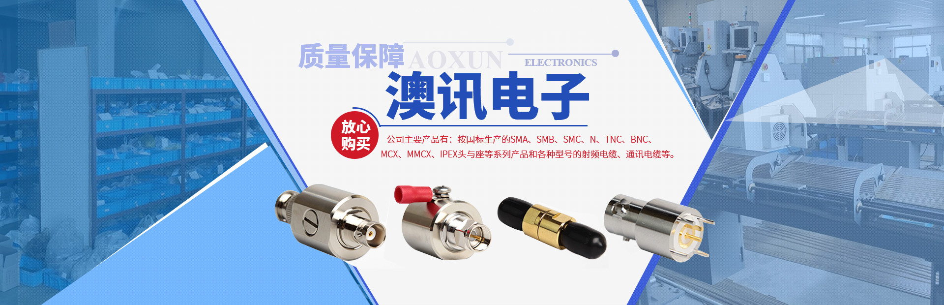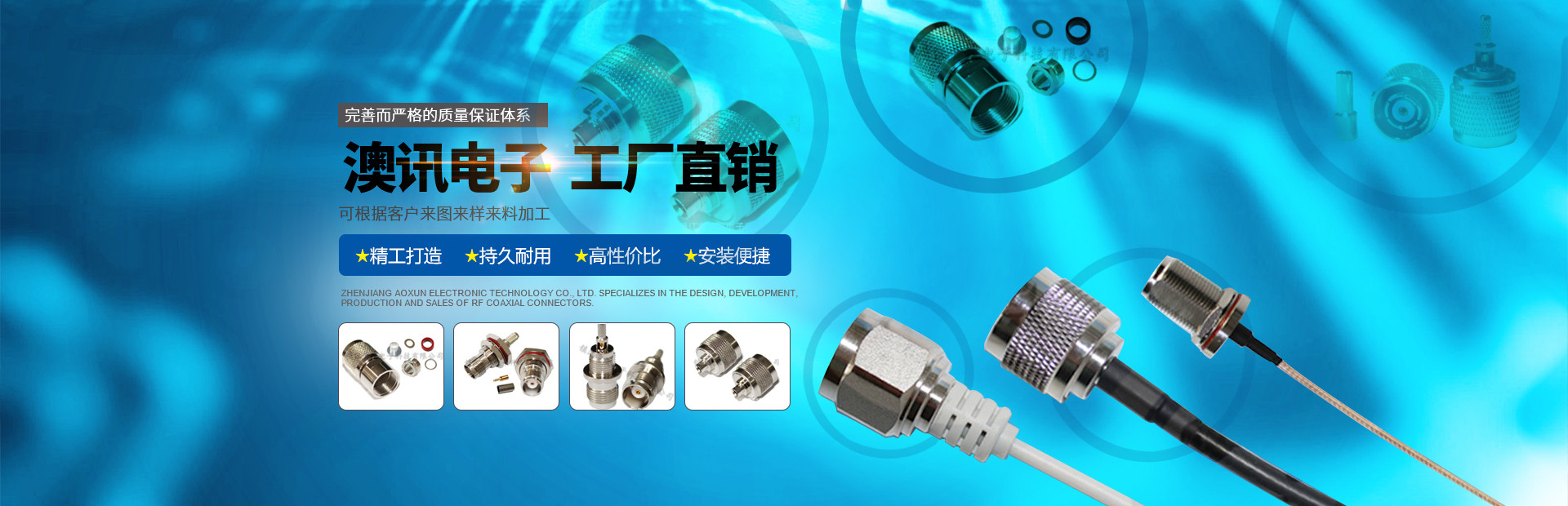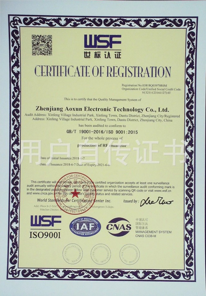鎮江市澳訊電子科技有限公司,占地麵積5000平方米,現有員工近百名,各類技術人員占15%。我公司專業從事射頻同軸連接器的設計、研製、開發、生產、銷售。